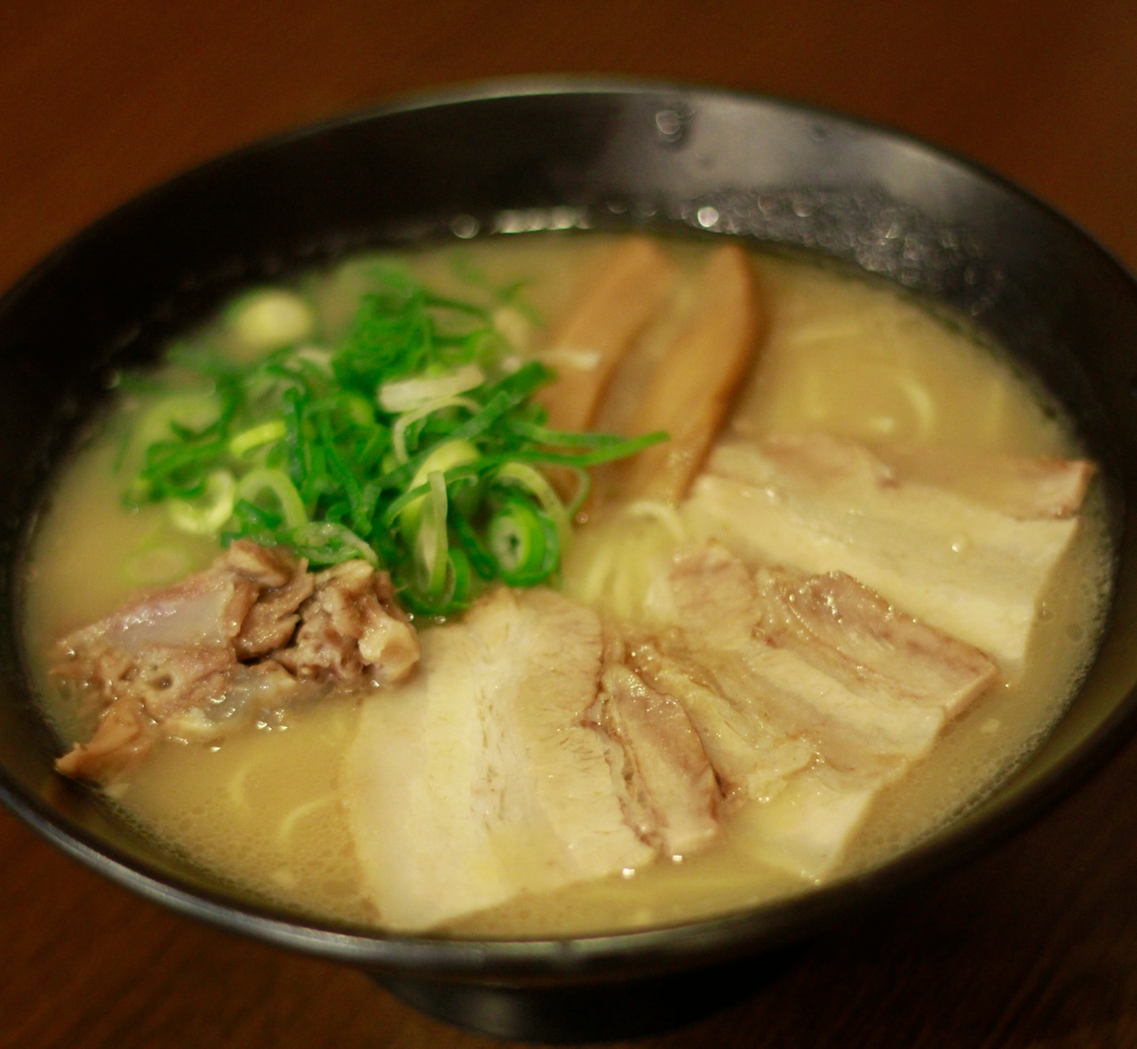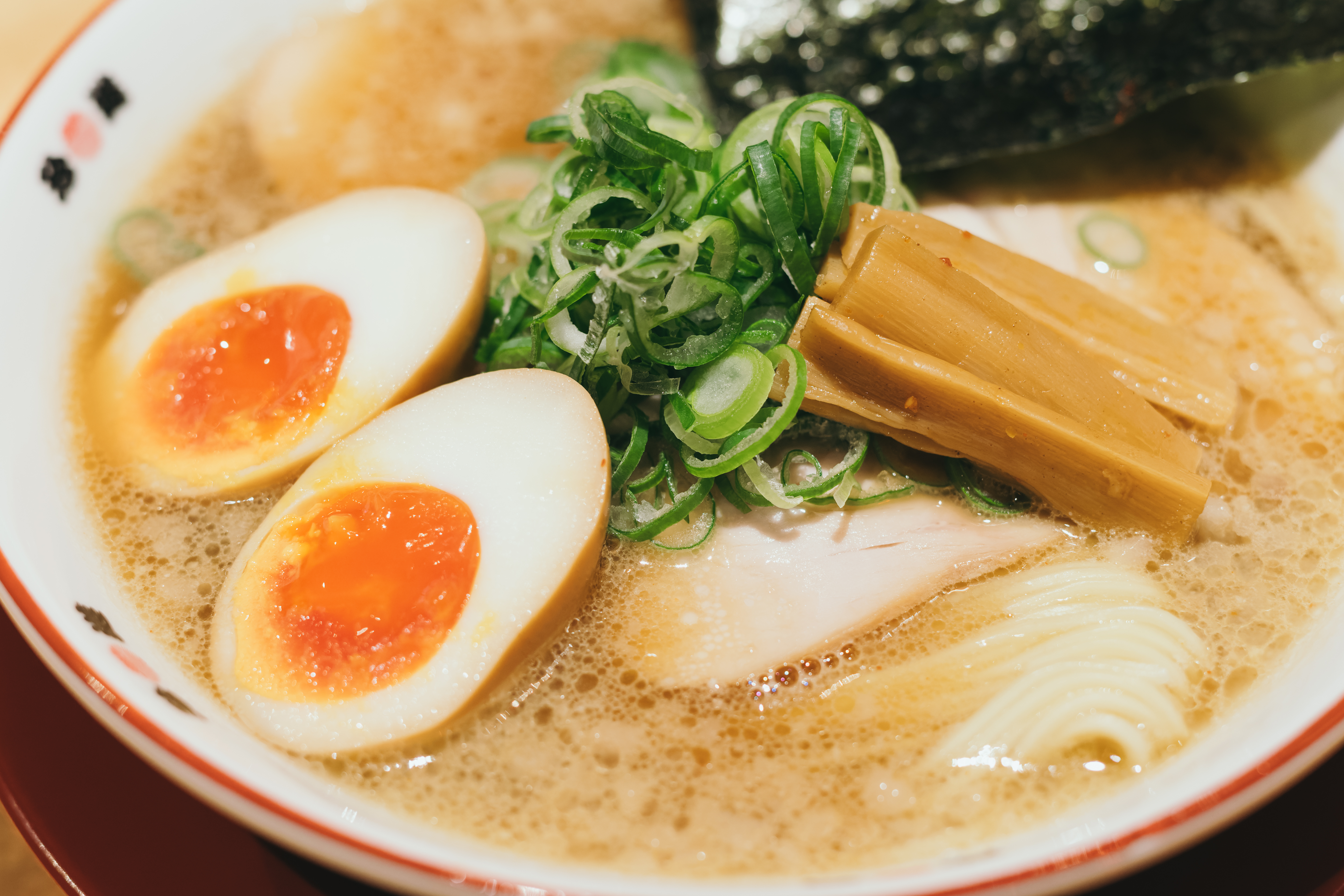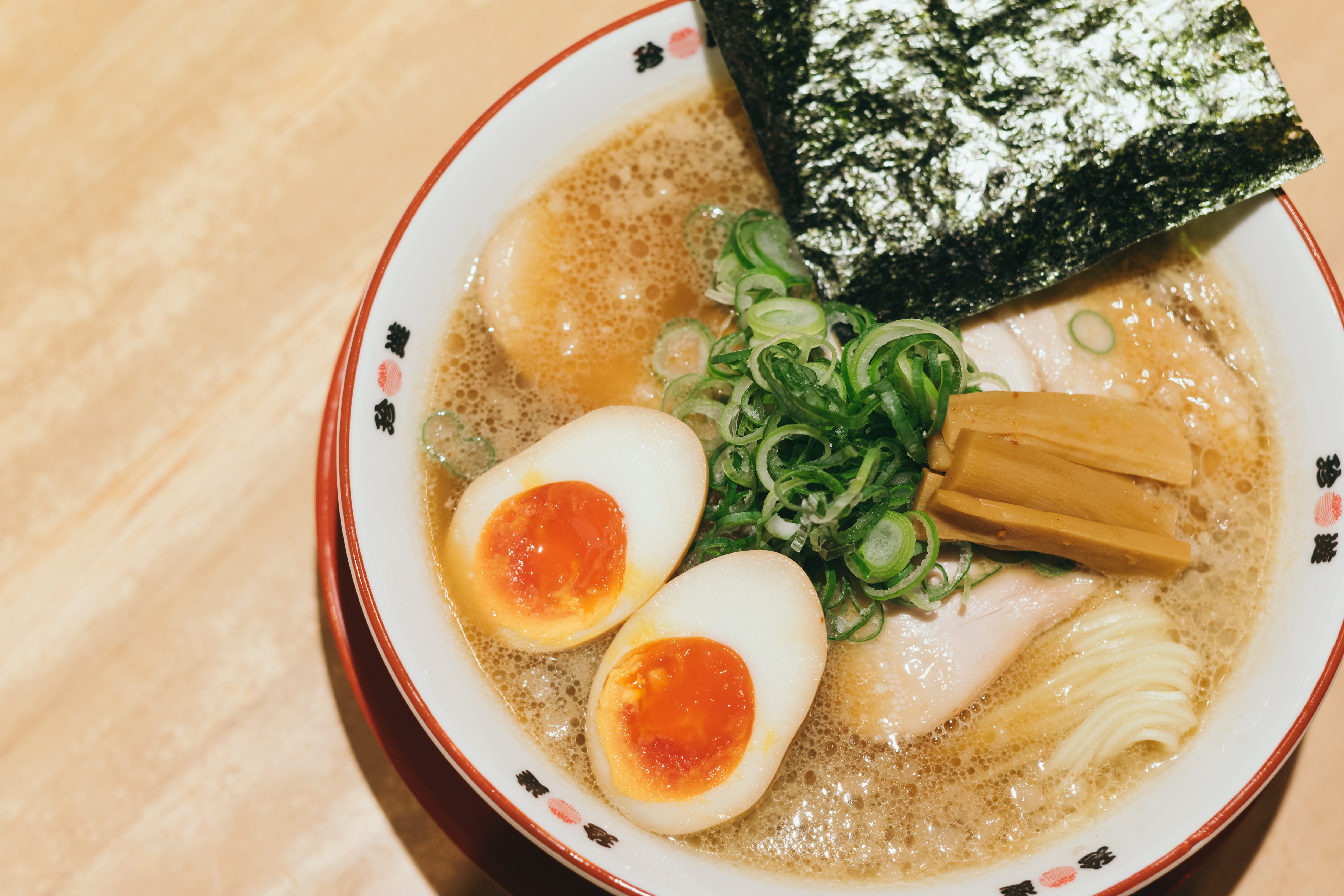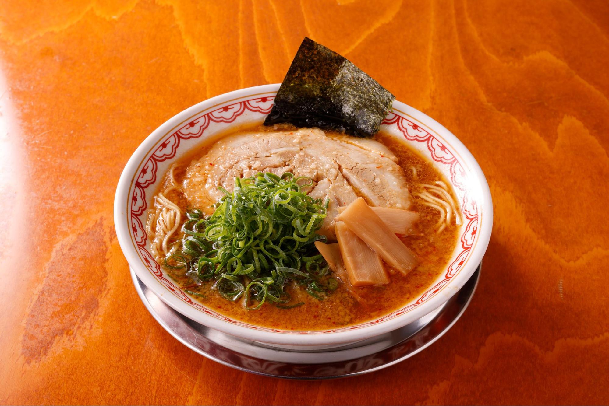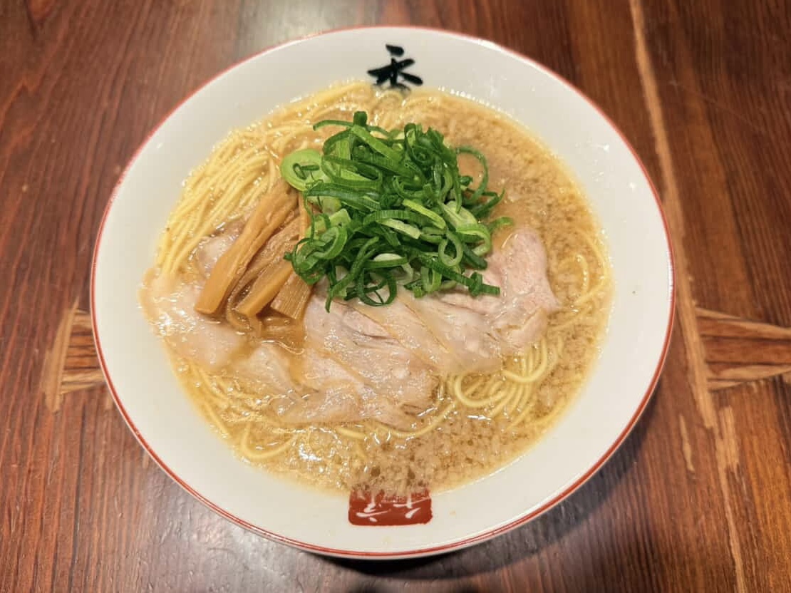 惜しまれつつ閉店した行列店が復活。豚骨ベースに和風だしを合わせ、自家製醤油だれで仕上げたスープはコク深く、ご飯も進む味わいです。
