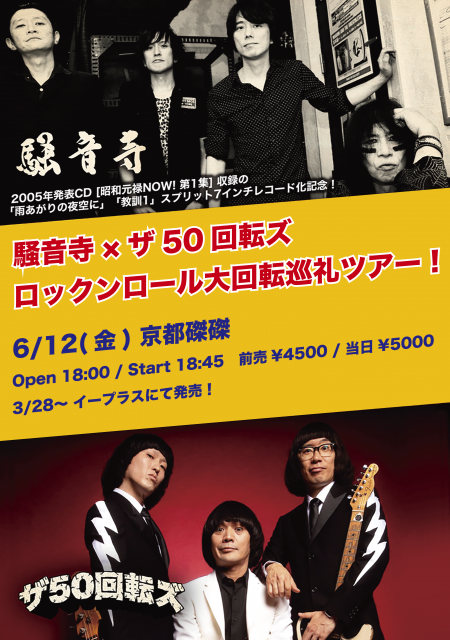 アート/音楽/劇場アート/音楽/劇場騒音寺×ザ50回転ズ ロックンロール大回転巡礼ツアー!~京都編~【磔磔】
