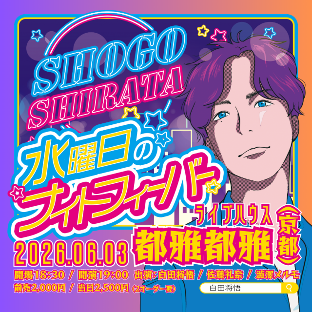 アート/音楽/劇場アート/音楽/劇場白田将悟の 水曜日のナイトフィーバー【都雅都雅】