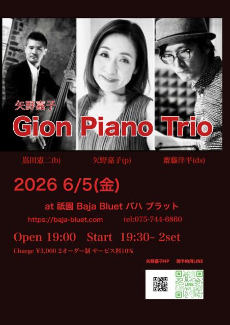 アート/音楽/劇場アート/音楽/劇場2026 6/5 矢野嘉子Gion Piano Trio at 祗園Baja Bluet