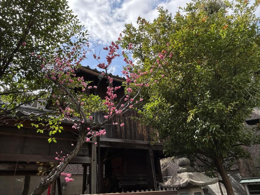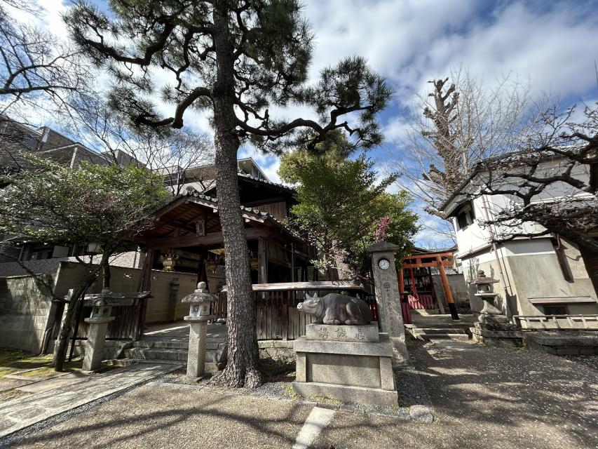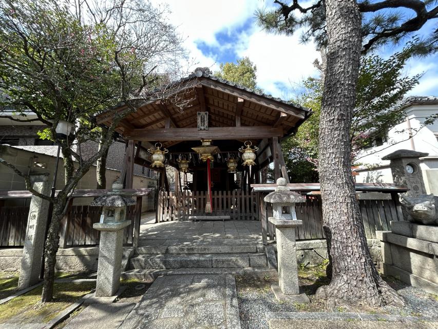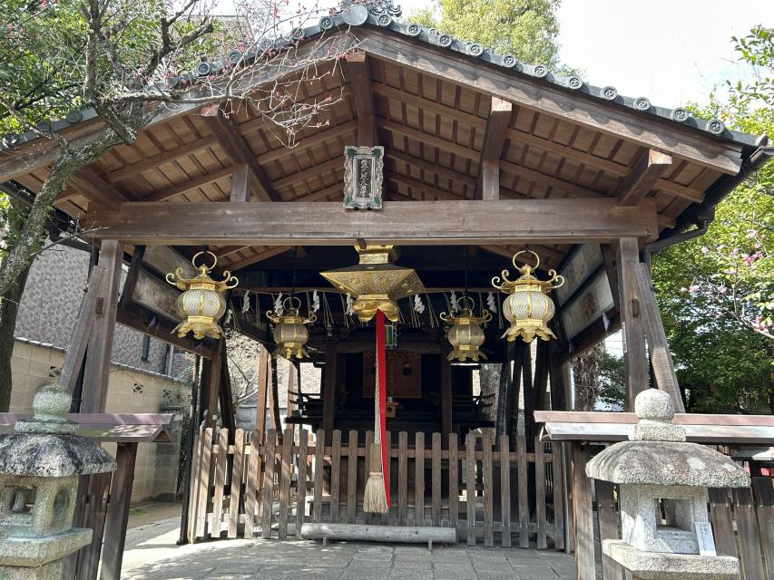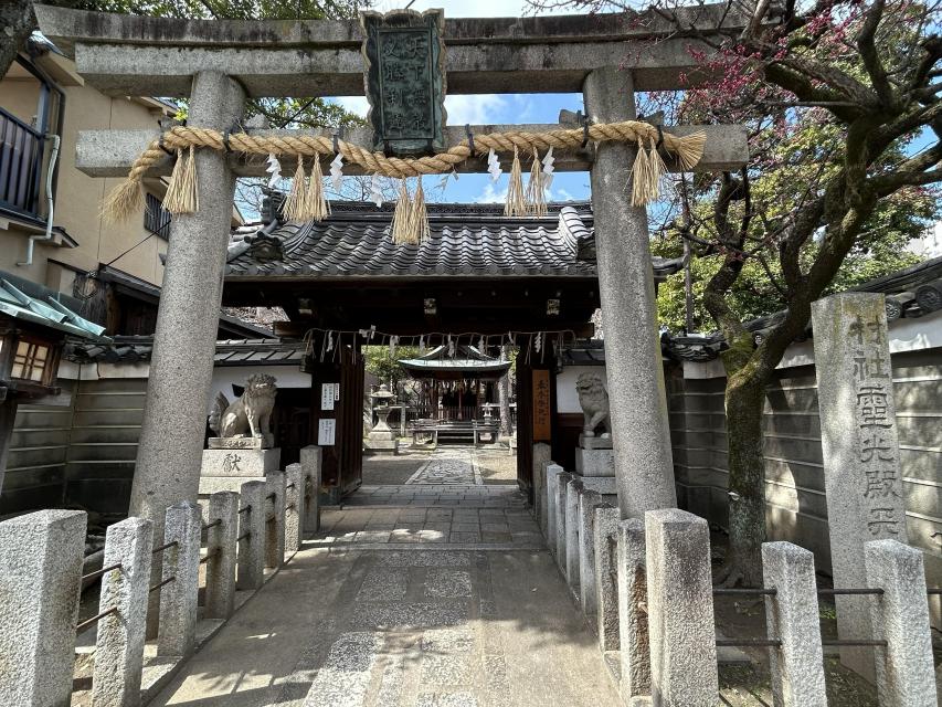 1018年(寛仁2)菅原道真6世の孫、菅原定義が、九州配流の途中の道真が立ち寄った河内国若江の旧跡地に、創始したのが始まりと伝える。その後、道真左遷の時に、天から一条の光が下ったという当地に移され、そのことから霊光殿と称するようになった。若江家が代々の祠官として奉仕したが、応仁の乱で東寺に御神体を移した。江戸時代になって絶えていた若江家が再興されると塔之段の若江家に再遷、さらに1761年(宝暦11)現在地に移転した。徳川家康が若江家再興に尽力したことから、1636年(寛永13)当社に合祀されている。例祭、11月25日。